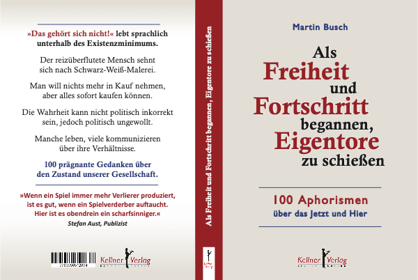 Im Kellner Verlag erschien 2018 ein Aphorismen-Band von mir: „Als Freiheit und Fortschritt begannen, Eigentore zu schießen“.